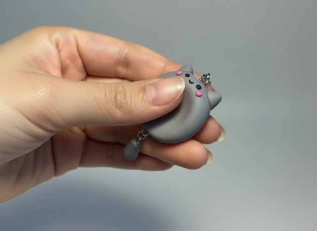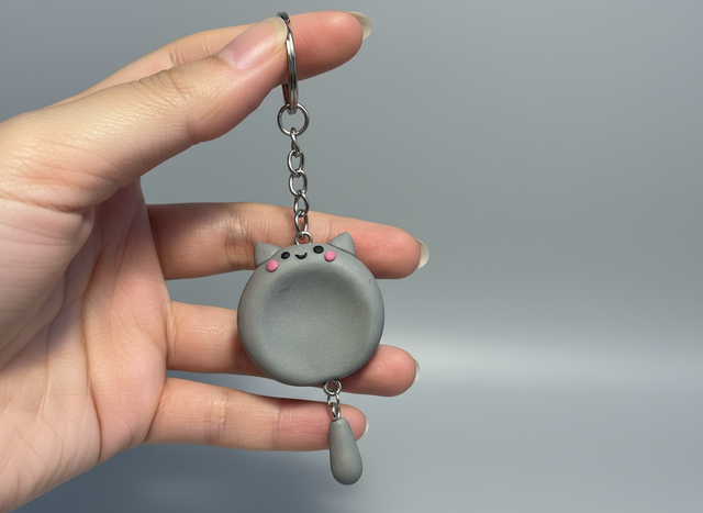 Ta med dig ett lugnt ögonblick var du än går med denna handgjorda oro-sten nyckelring formad som en charmig liten katt! Den runda fördjupningen gör den perfekt att hålla i, trycka på eller snurra när du behöver slappna av – samtidigt som den fungerar som en unik och söt accessoar.