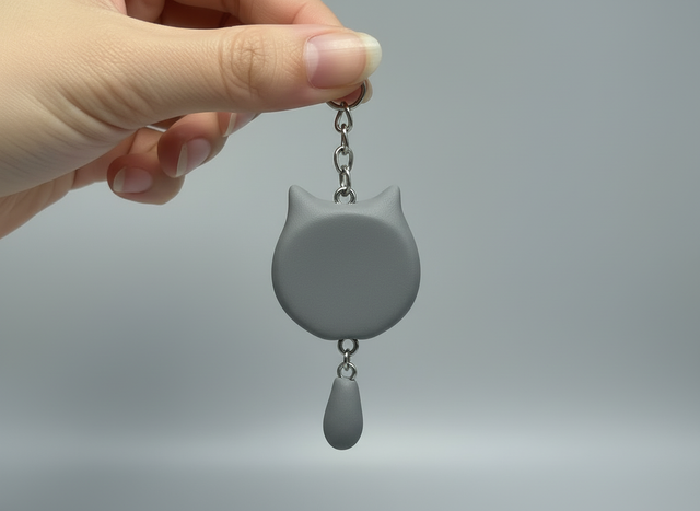 Tillverkad i polymerlera för en mjuk, matt känsla och monterad på en stabil metallkedja som enkelt fästs på nycklar, väska eller ryggsäck.
